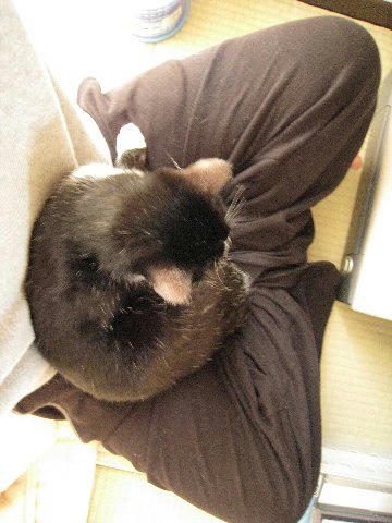 マフッと羊さんクッションが気に入ったらしく、最近は俺の膝よりも