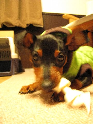 ガリガリ・・・この硬さがたまんないのよねぇ☆犬という動物は、ほんとに何でも食べようと試みる。何でも口にいれる子供のようだ。