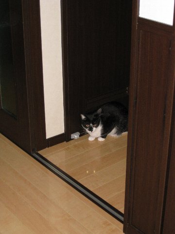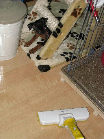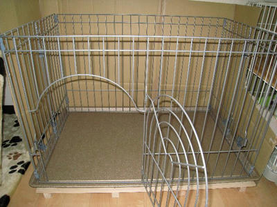 んで、帰ってくるとケージの前でしっかりお座りしている。トイレはすでに水溜りのよう。